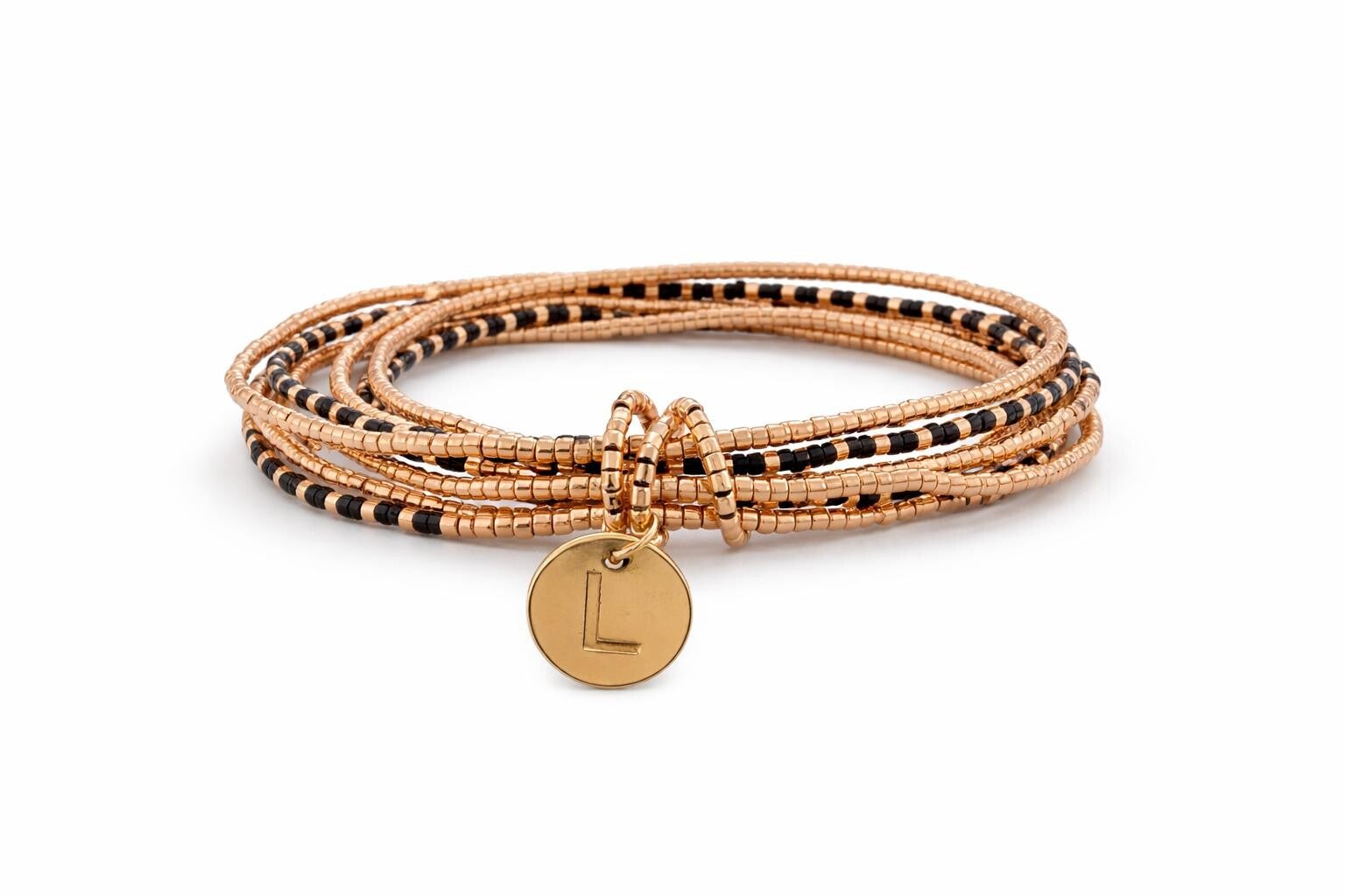 P U R E E L E G A N C E is a delicate single-strand bracelet crafted with premium Toho beads and finished with a meaningful letter charm in 9-carat gold-plated brass — a small detail that carries a big story.